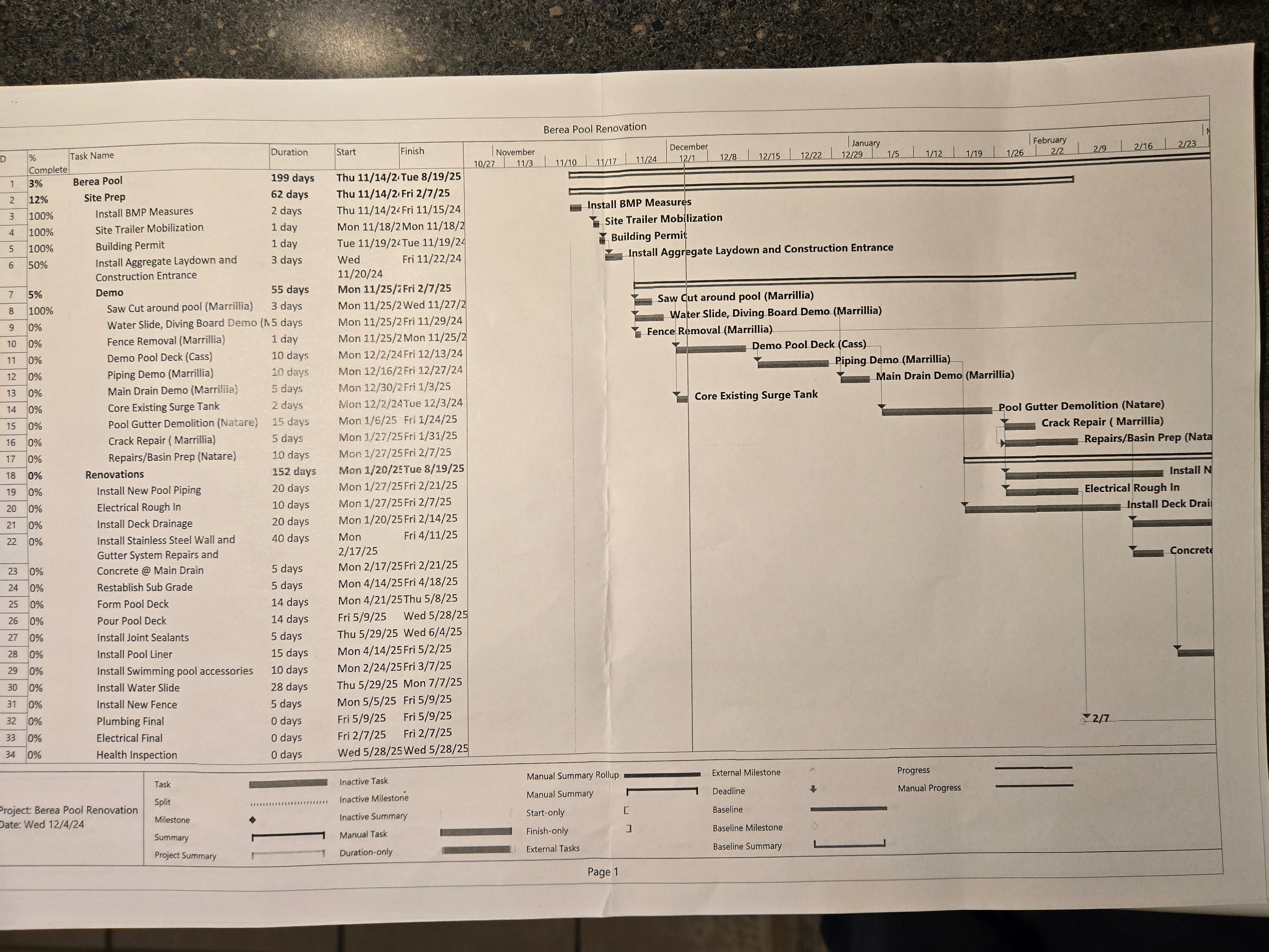 Timeline for the pool’s repair: