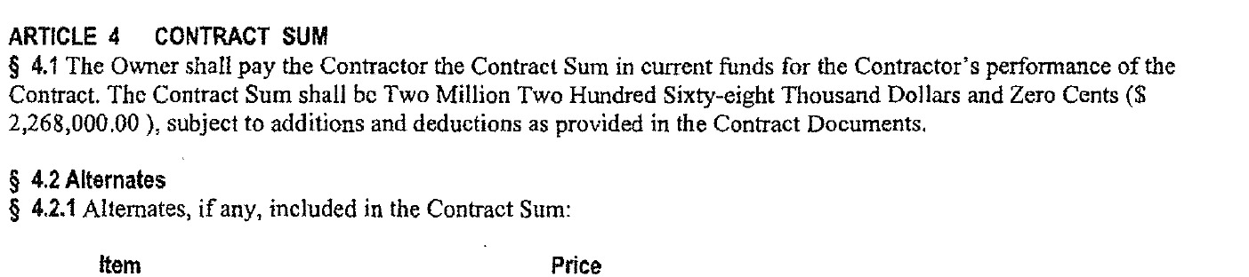Then the fully executed contract, which is not itemized, I discovered: