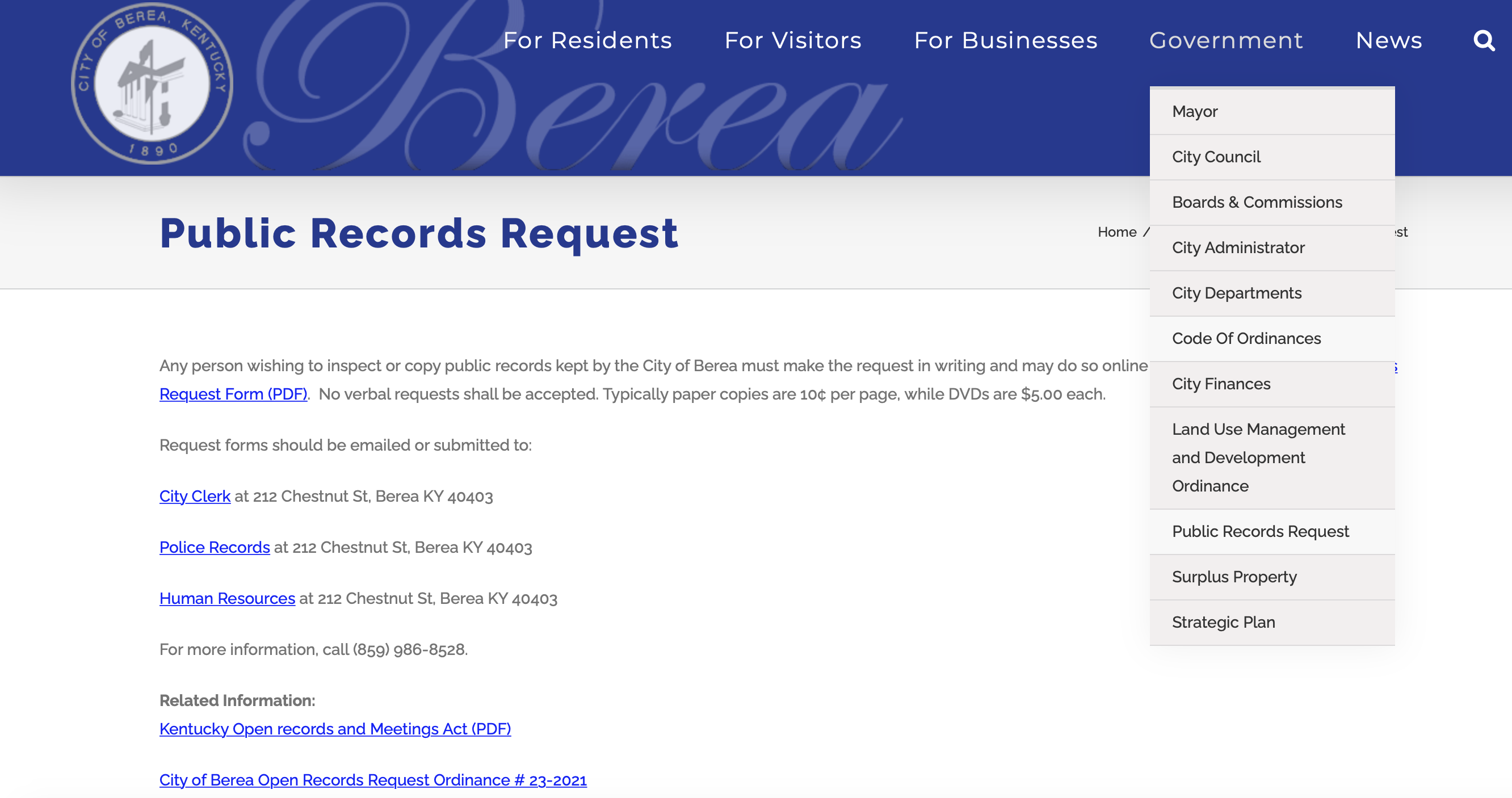 Here’s where you can order any document publicly available in the City of Berea.