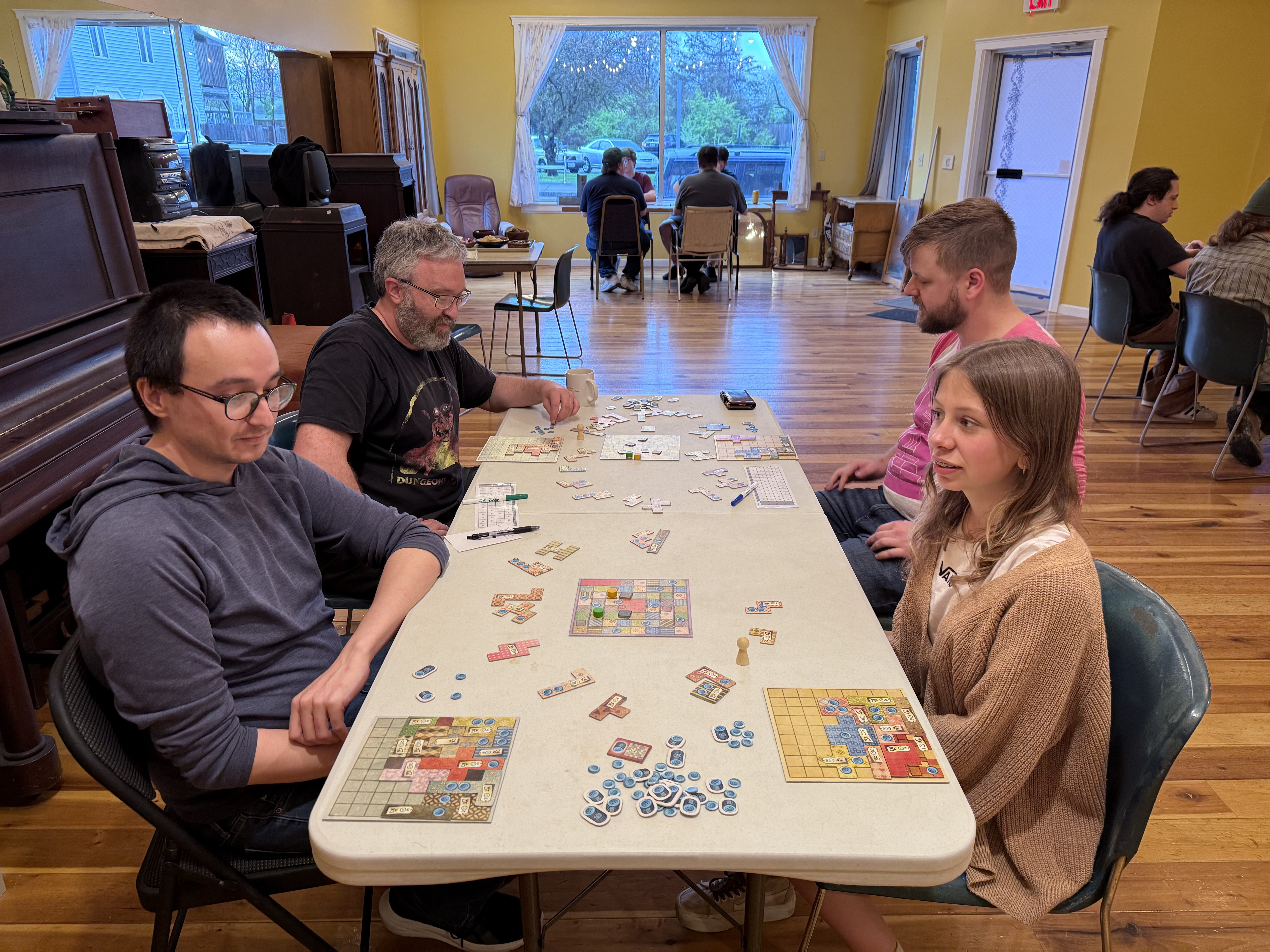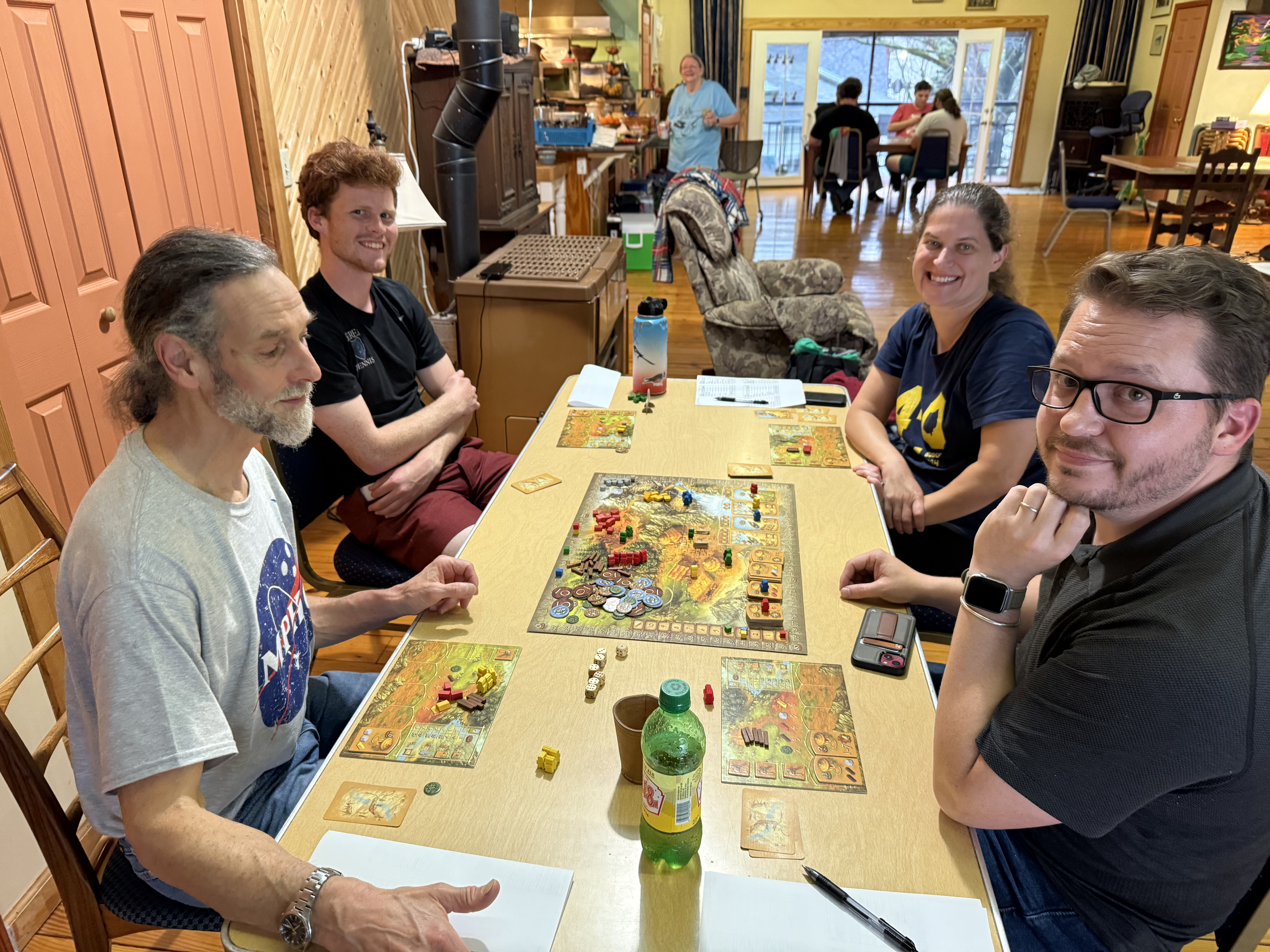 Down the road and around the corner from the Friday night fish fry was a board game tournament called Lion in Winter. Why this name? No one knows, not even the founder, Derek Glenn — “Maybe because I like that film with Katherine Hepburn…?” — but it attracts folks from all corners of the country, and some places in between.
