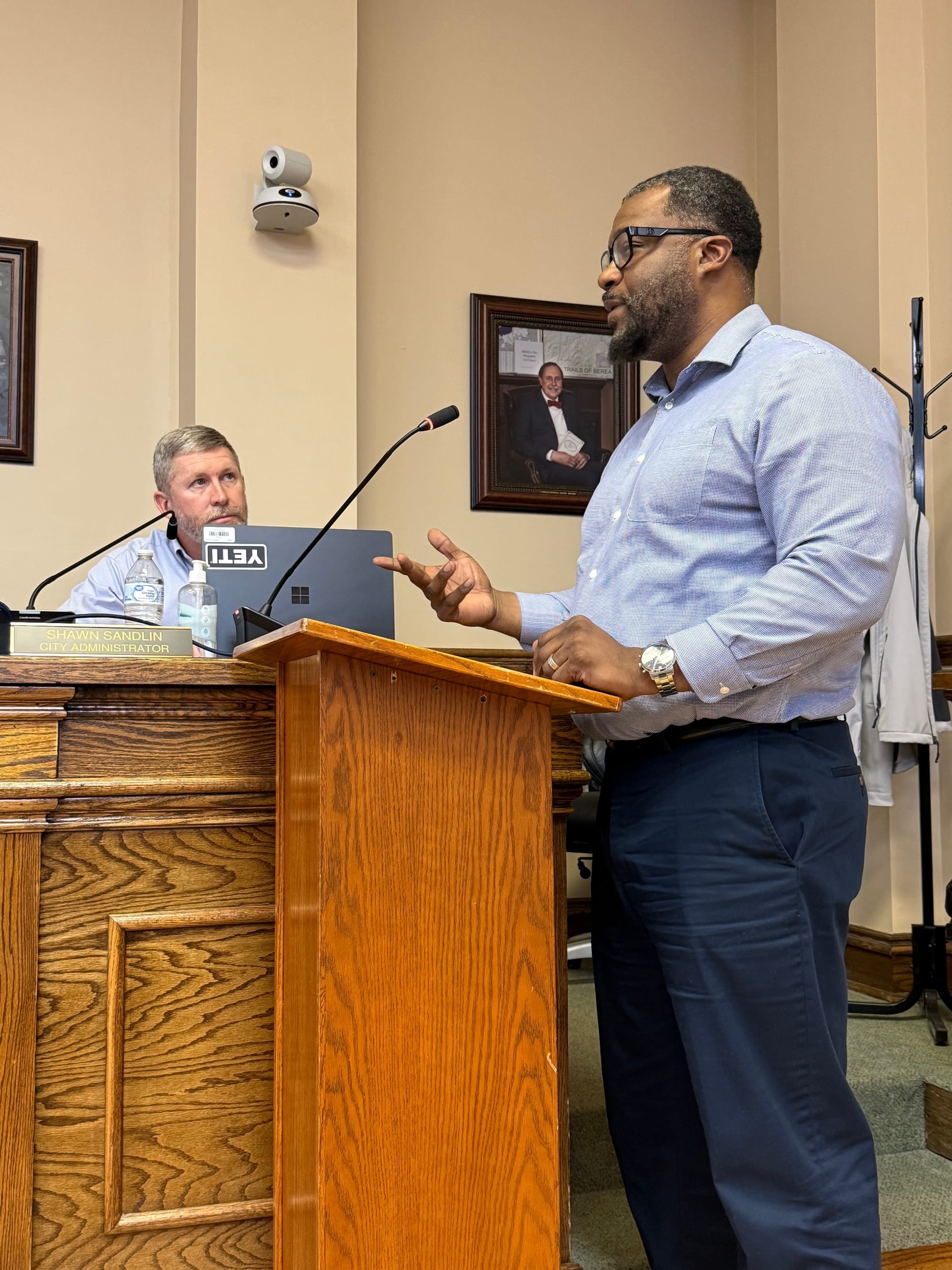 In a work session prior to the meeting, Shawn Sandlin, the City's administrator, announced that the City intended to enter into a licensing deal with Rick Terrill, Councilmember Ronnie Terrill's son. The agreement is for the use of two acres of the younger Terrill's property, situated across from the Berea College Forest Outreach Center parking lot, to allow visitors of the July Craft Festival held at the Pinnacles in July, to park. The agreement is for three years, and will pay the younger Terrill $2,000 annually through 2028.
